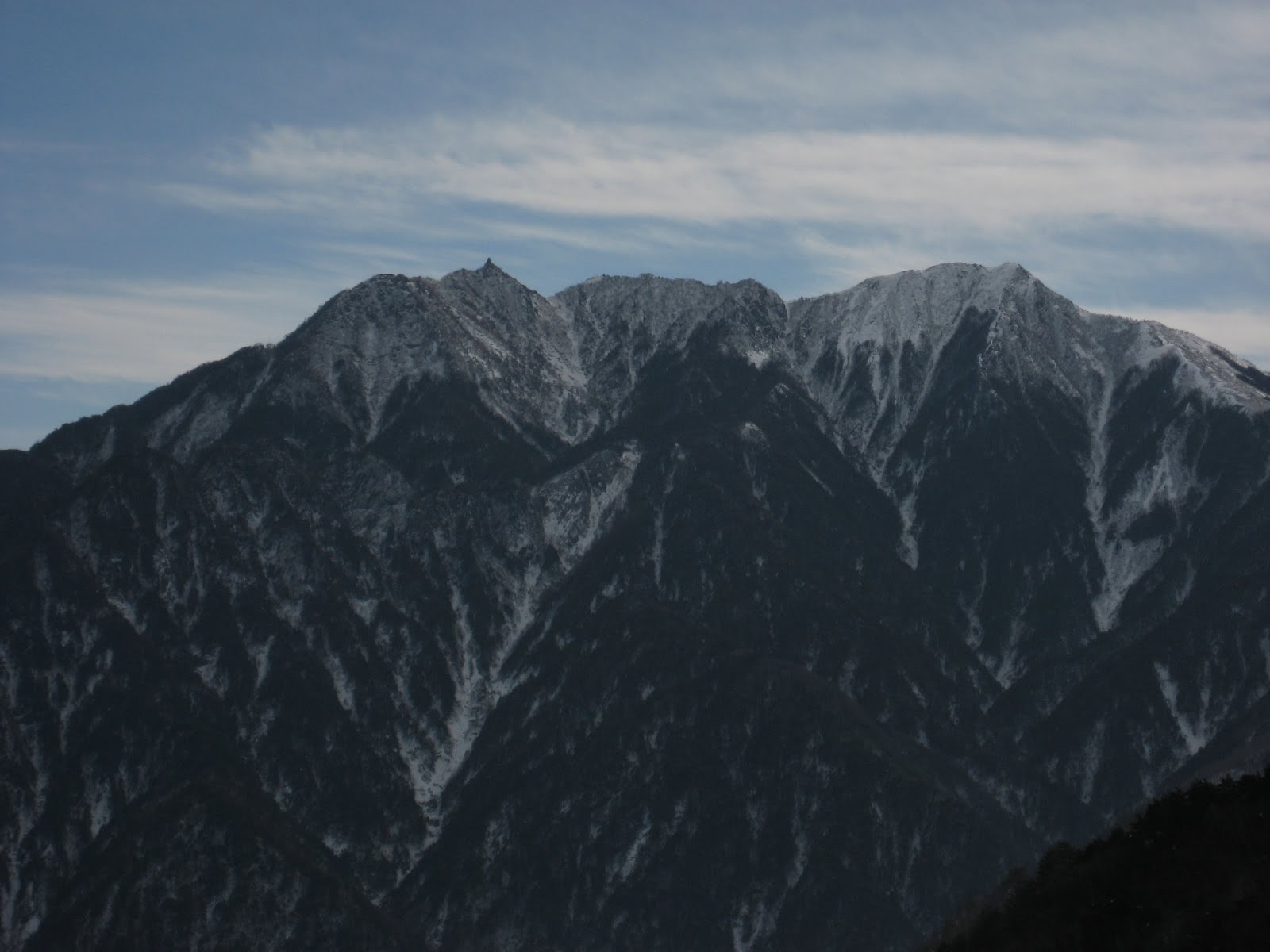 If you’ve ever taken the Chuō Line beyond Nirasaki (韮崎), on your way to Yatsugatake (八ヶ岳) or the North Alps, you will no doubt have noticed the striking mountain on your left at the top end of the South Alps… a giant pyramid, with a deep cleft down the middle of its east face, and a long and beautiful ridgeline extending unbroken all the way from the summit to the valley floor, an alititude gain of about 2400m. The mountain is Kaikomagatake (2967m), and the ridge you’re looking up is the celebrated Kuroto ridge.